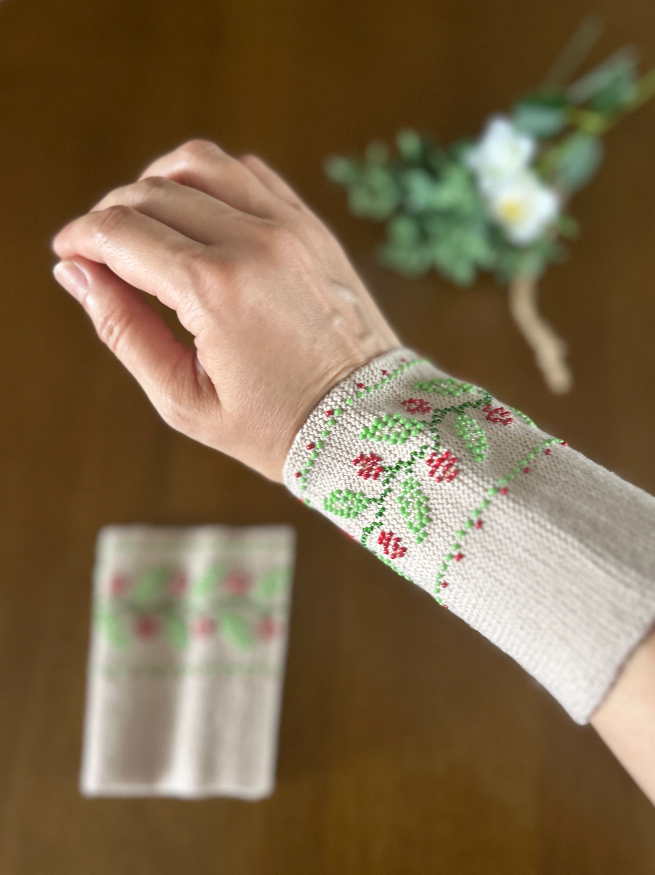 【ビーズ編みリストウォーマー】ベリー(ベージュ)/リトアニア[JL-RW02]