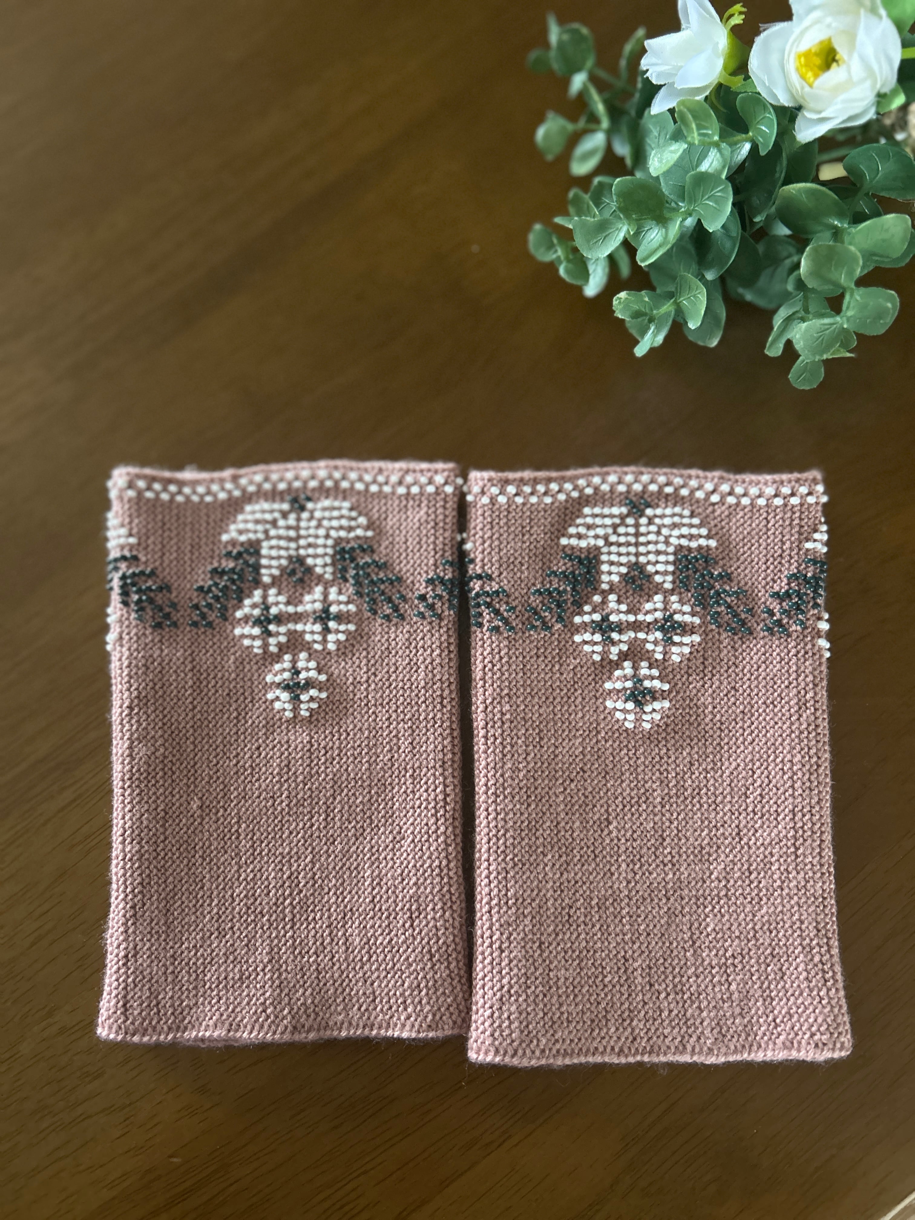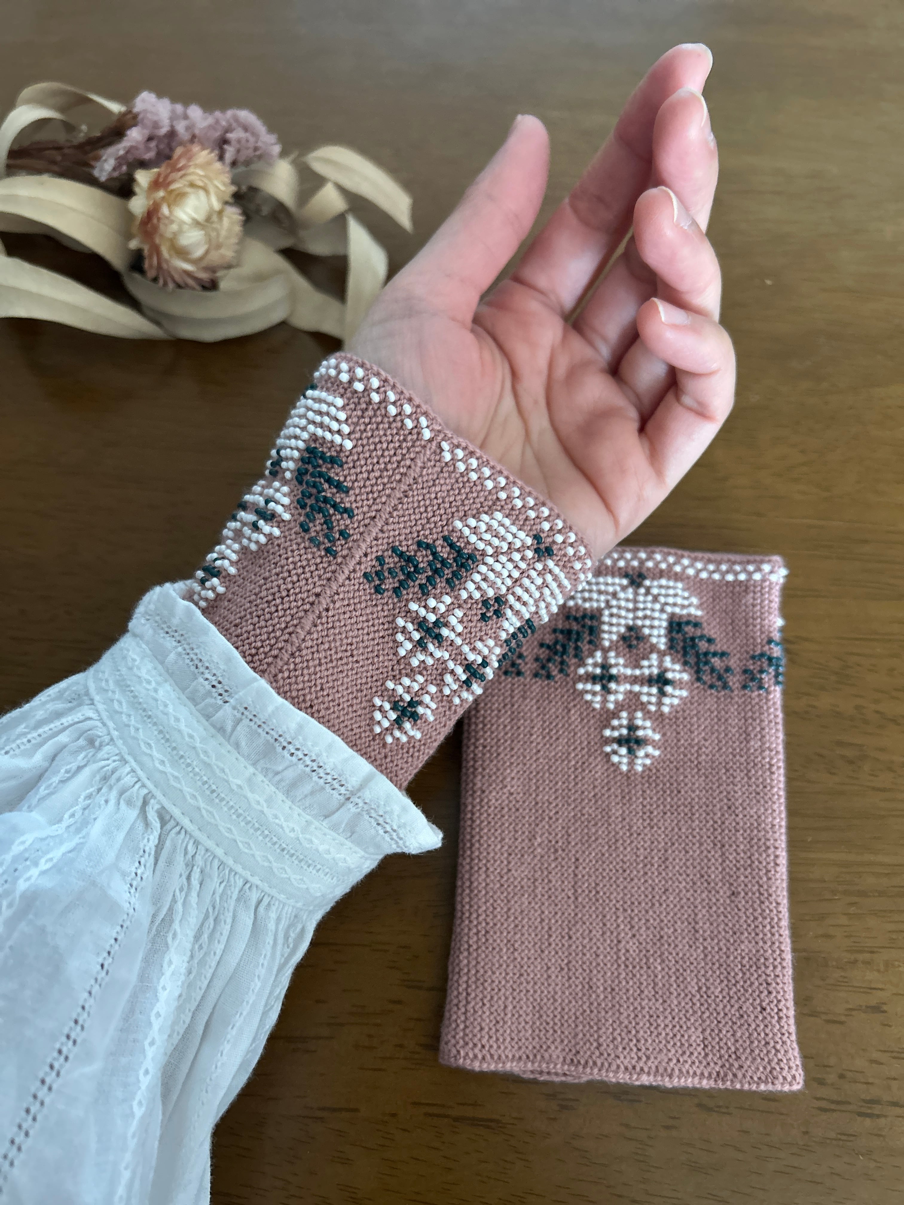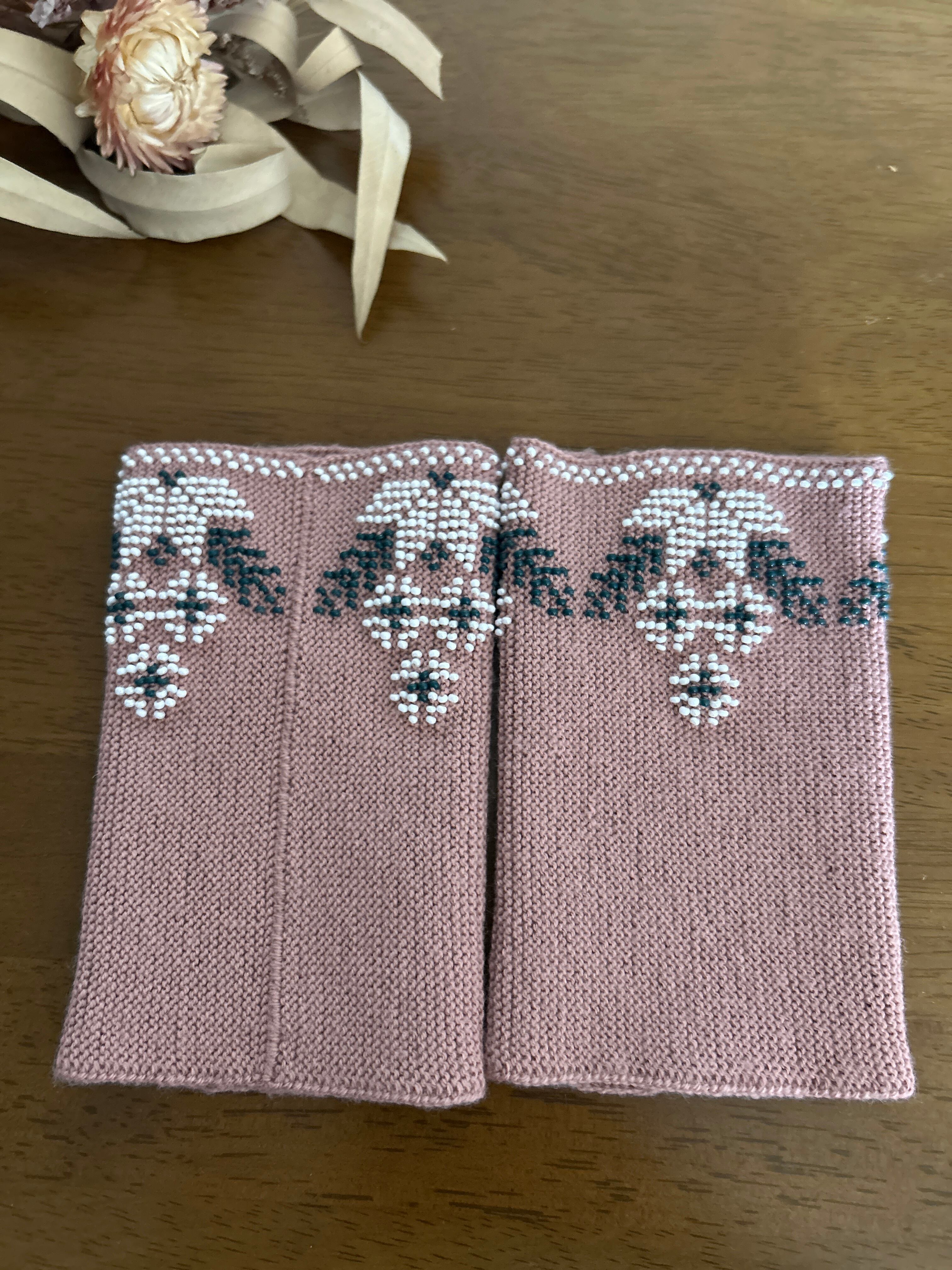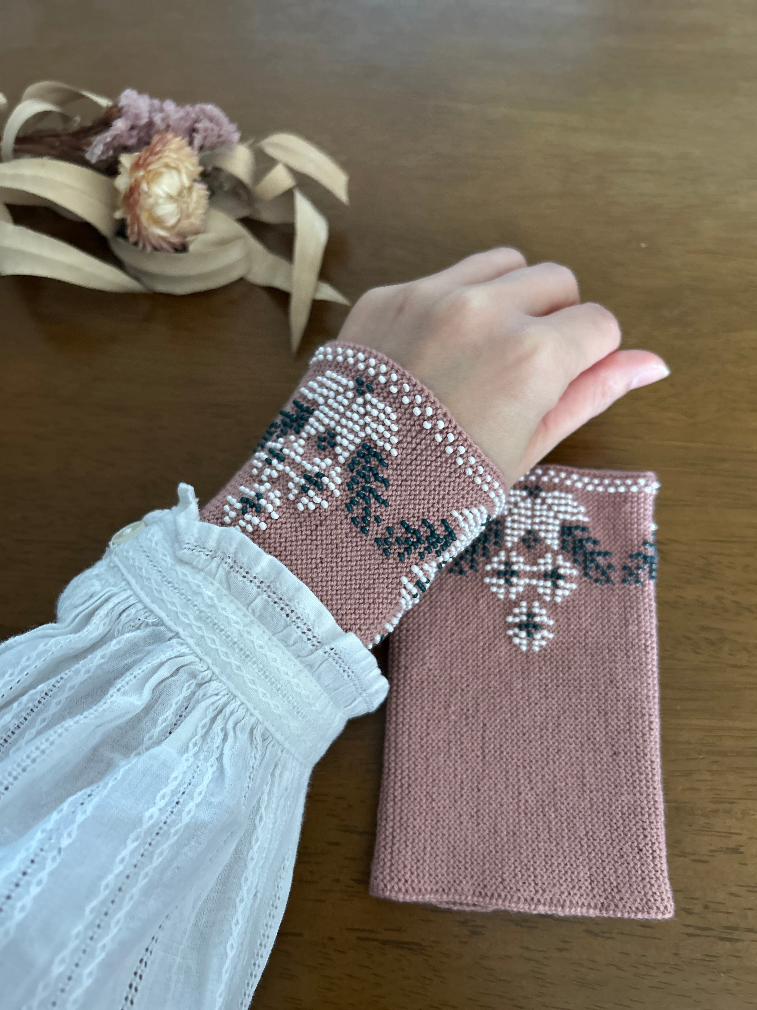【ビーズ編みリストウォーマー】フラワー(ダスティピンク)/リトアニア[JL-RW04]