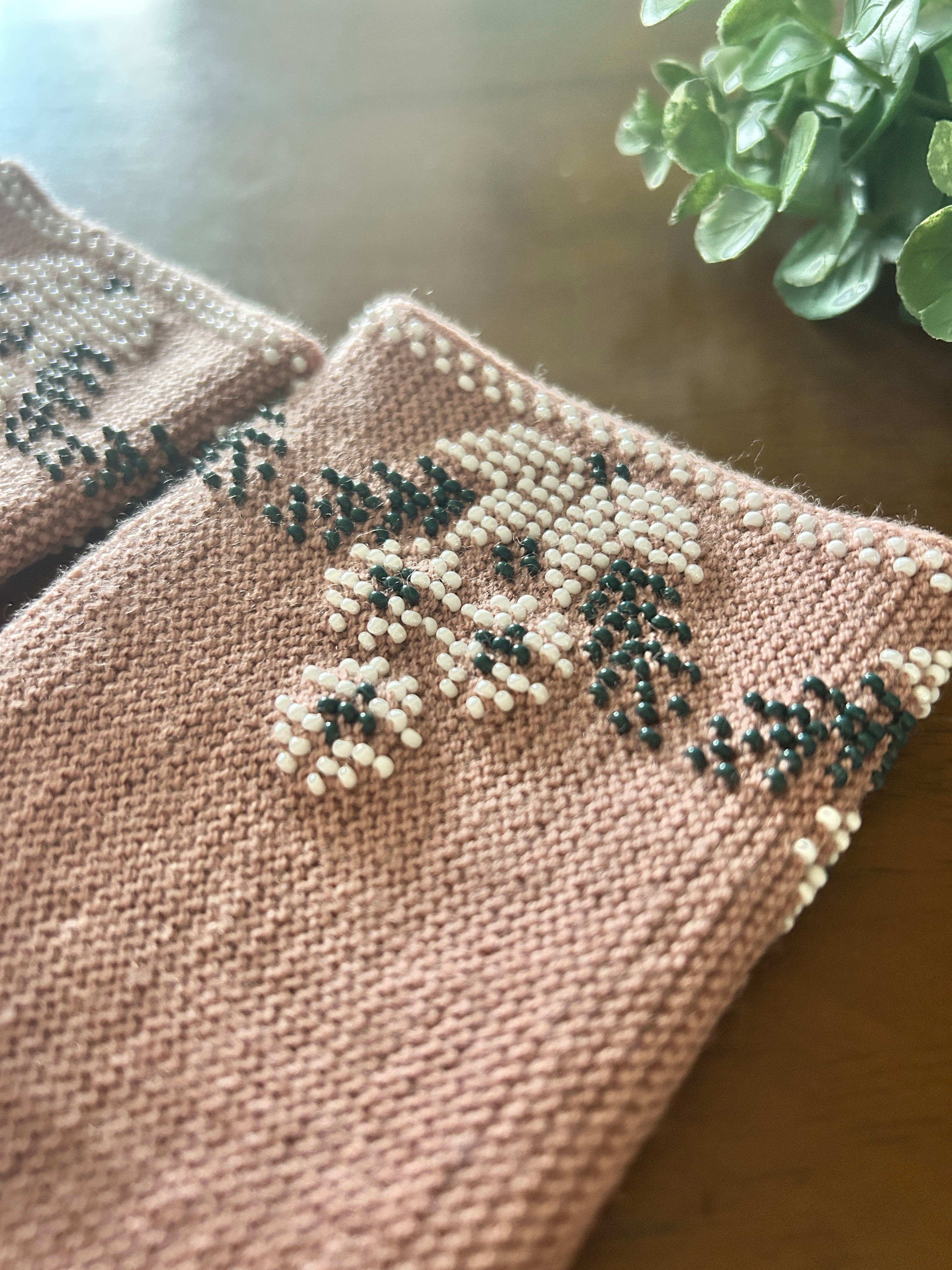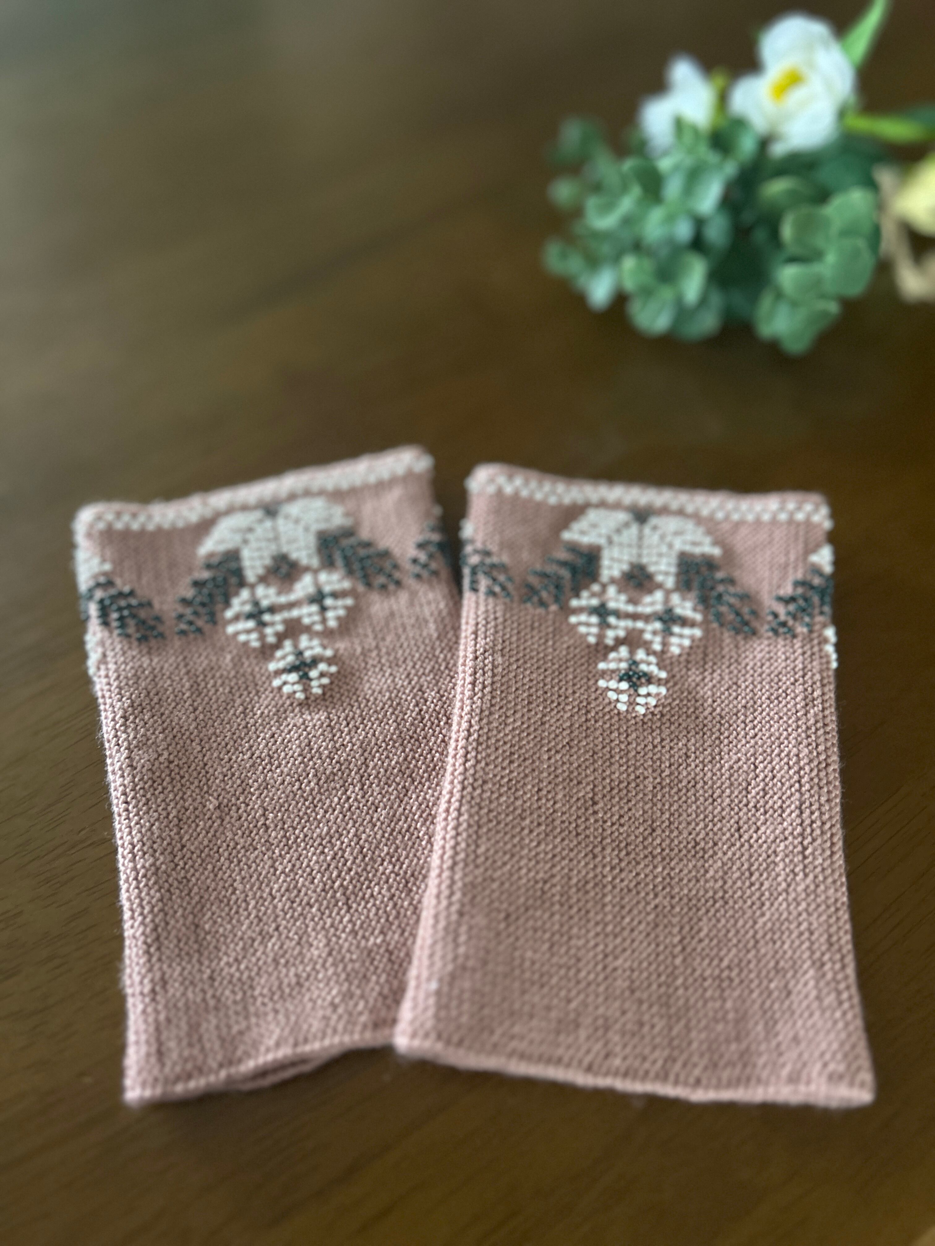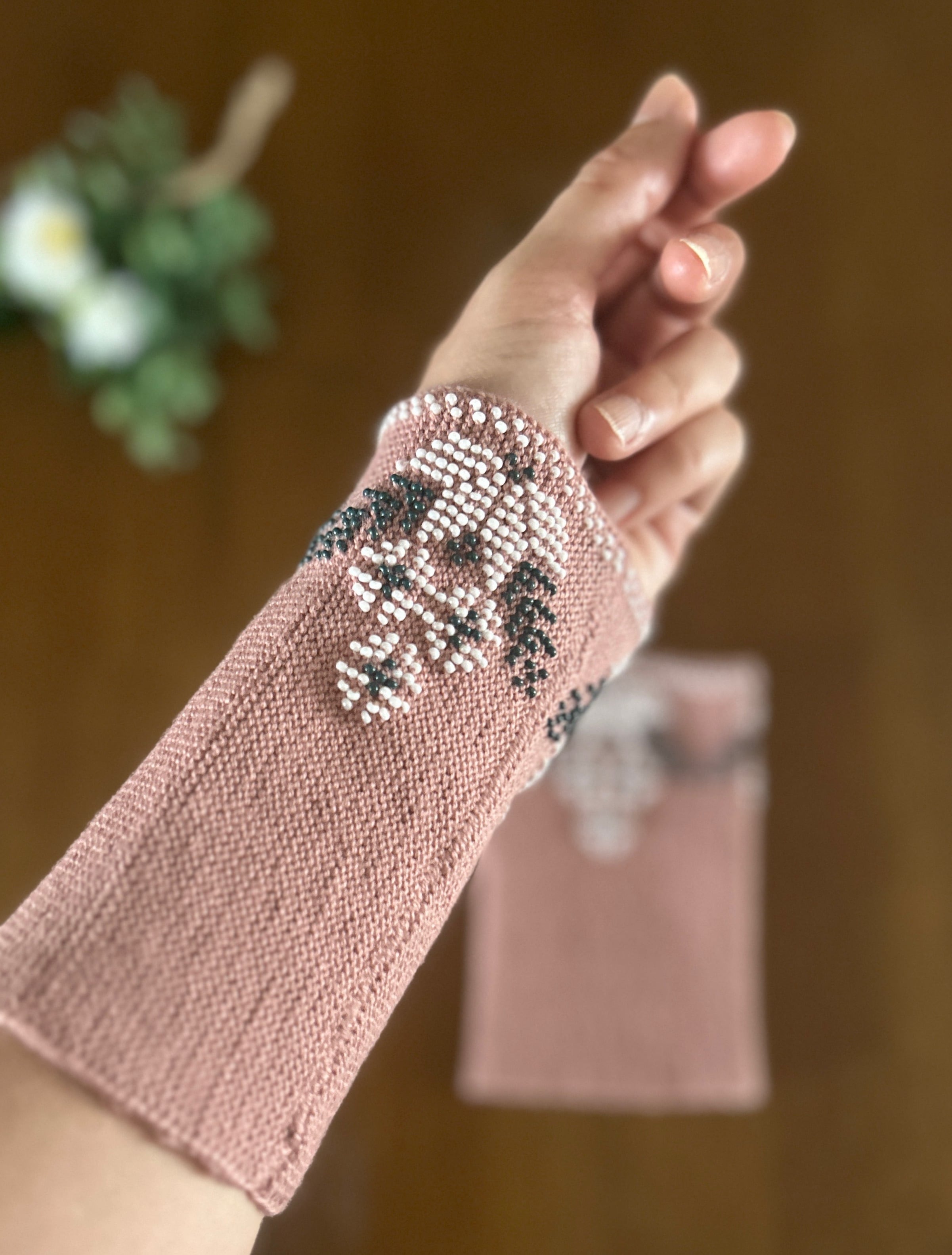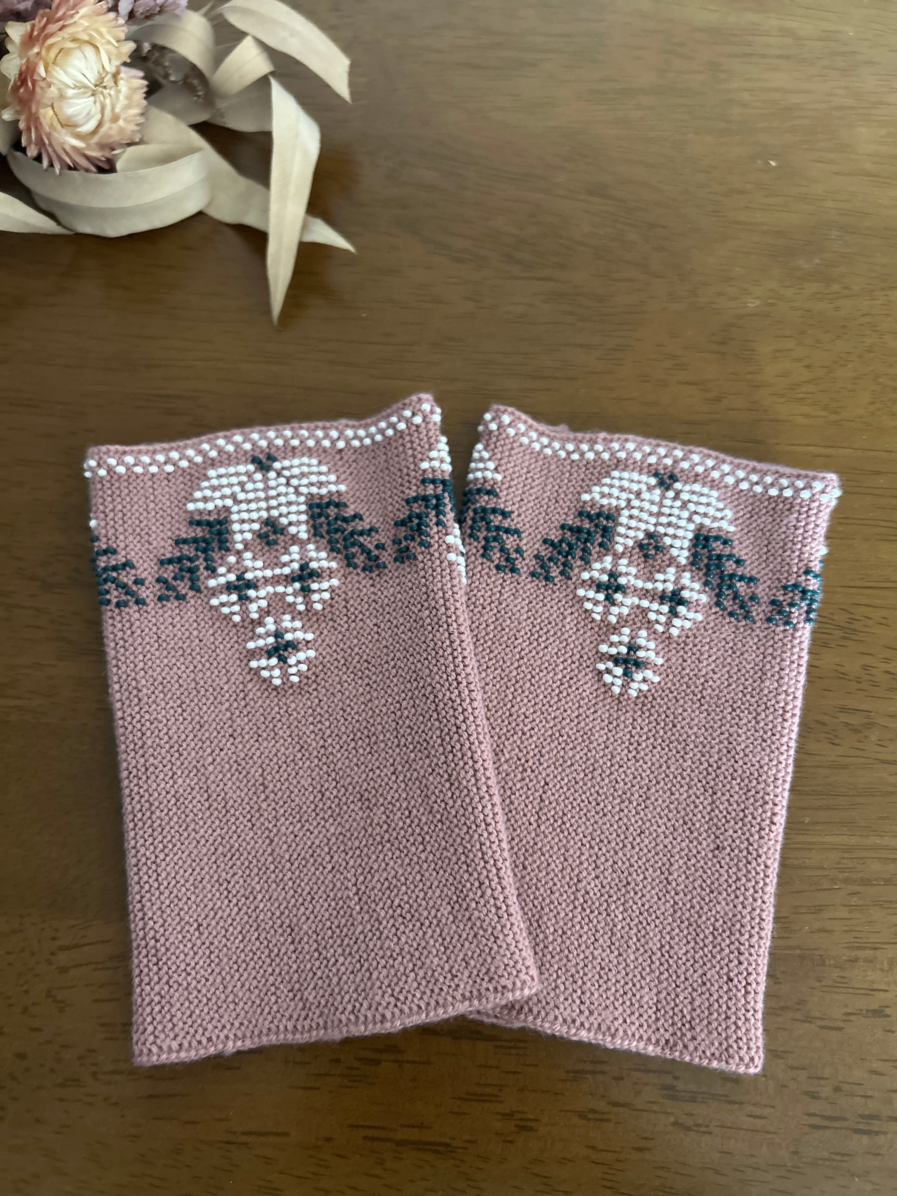 【ビーズ編みリストウォーマー】フラワー(ダスティピンク)/リトアニア[JL-RW04]