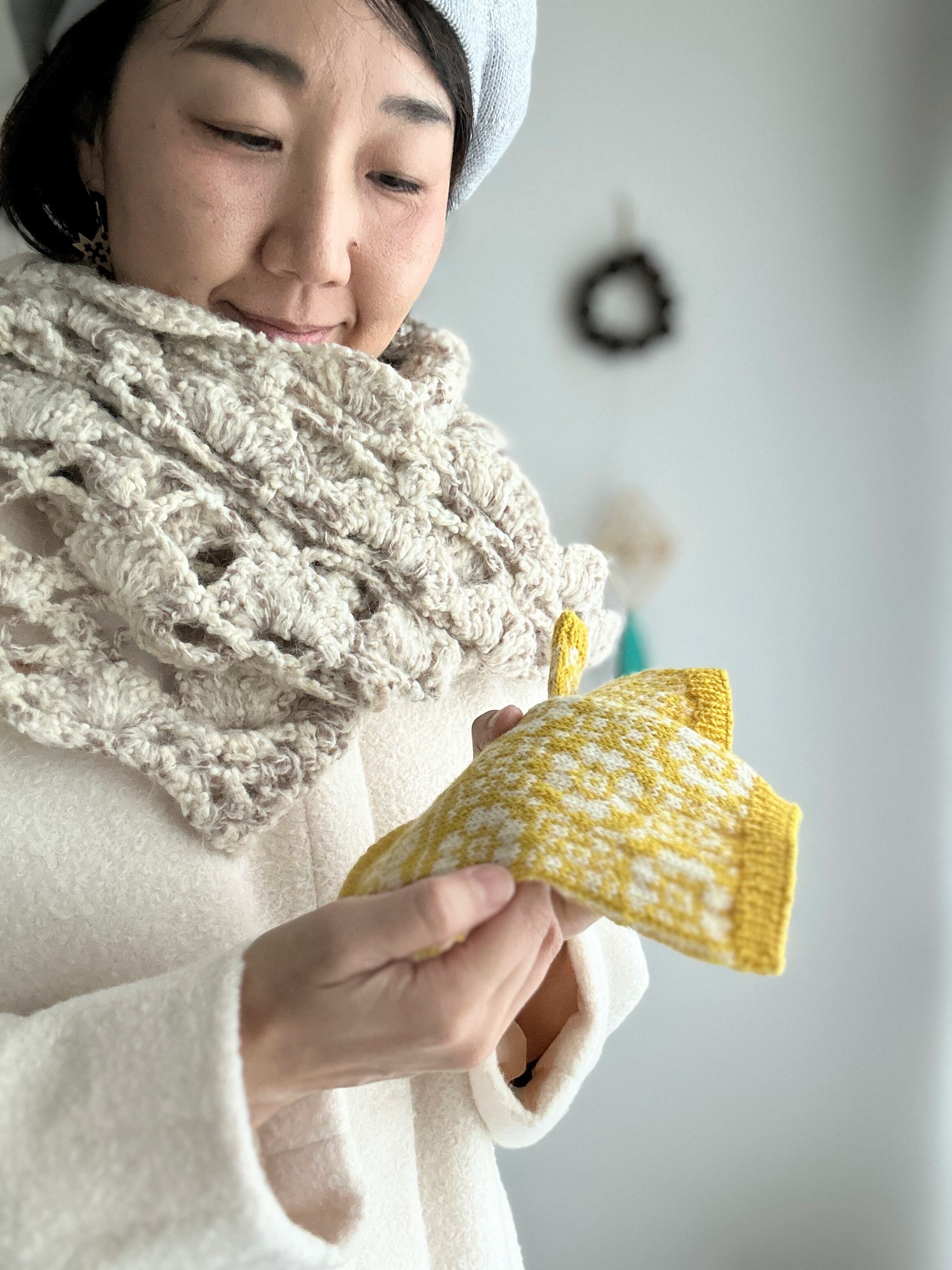 ・アルパカとメリノウールの混紡毛糸で編まれているため暖かい上に、