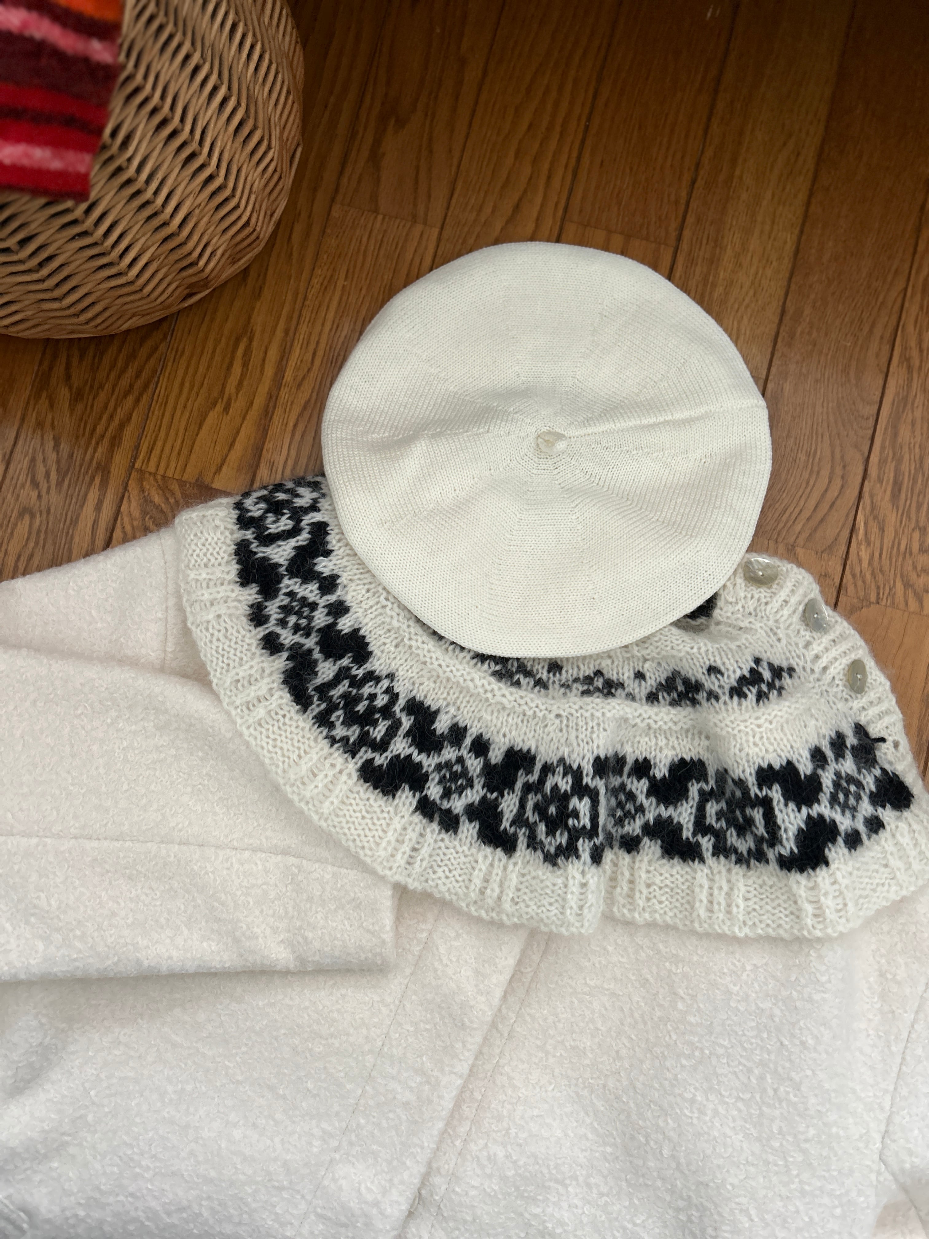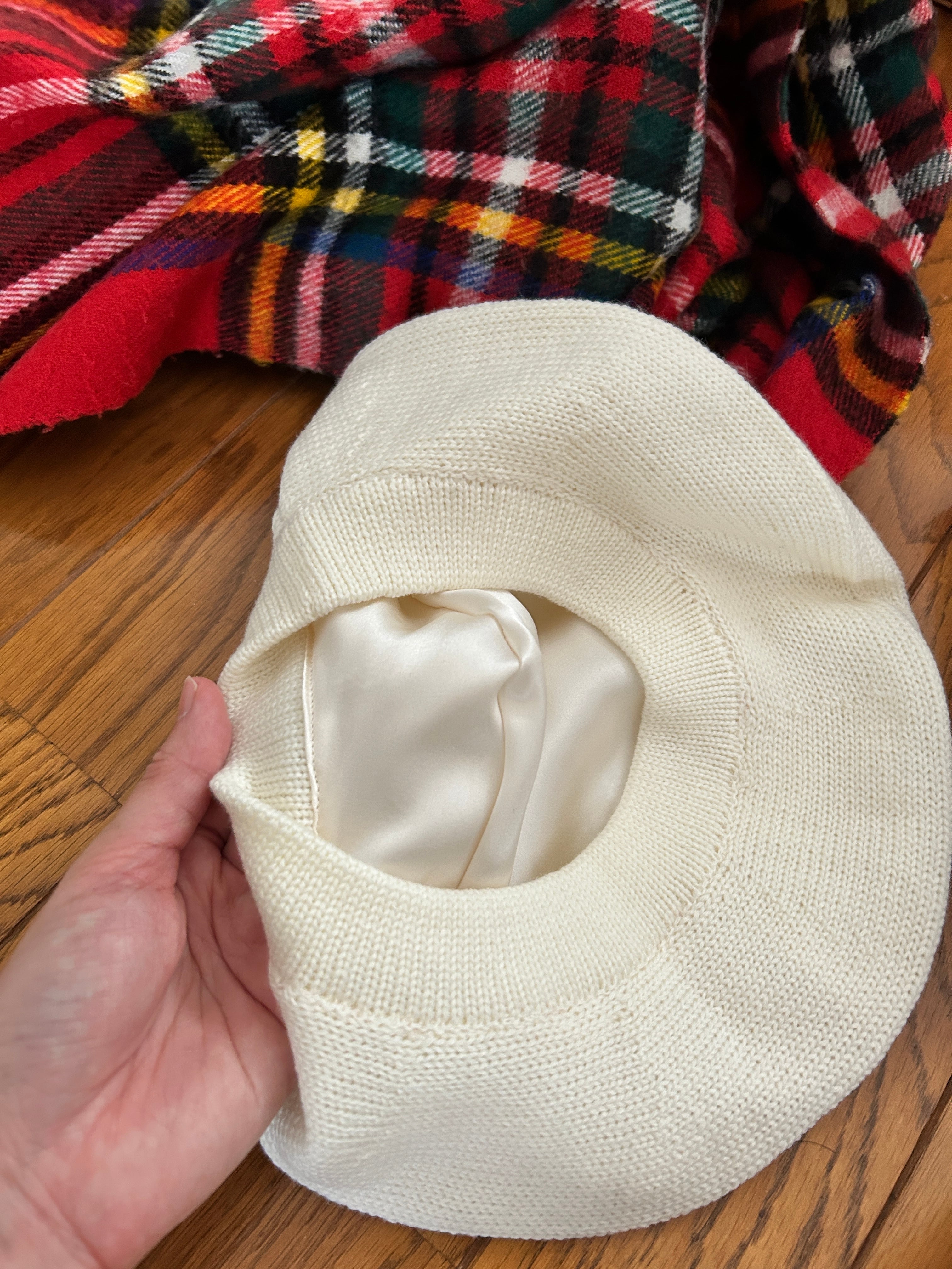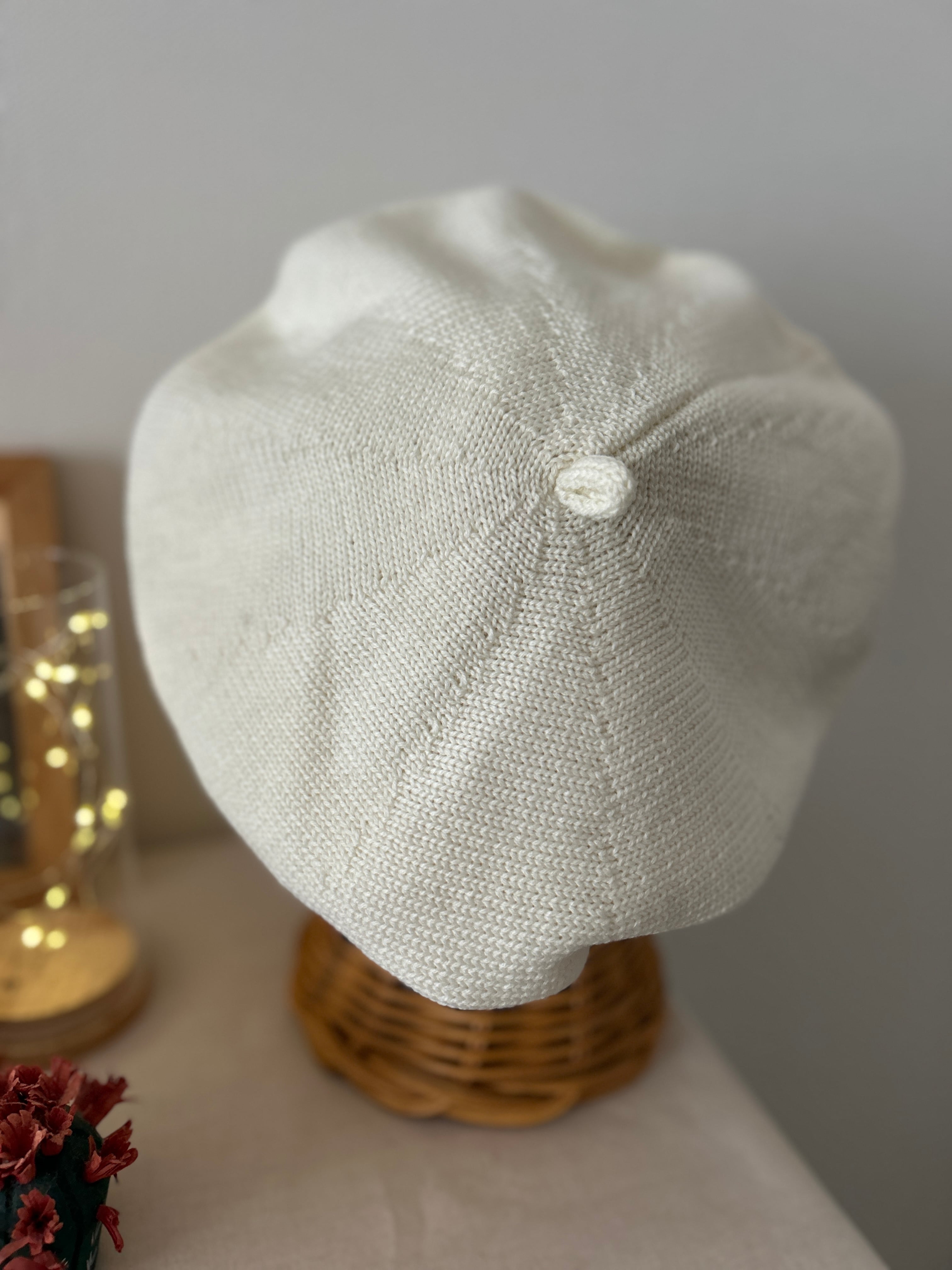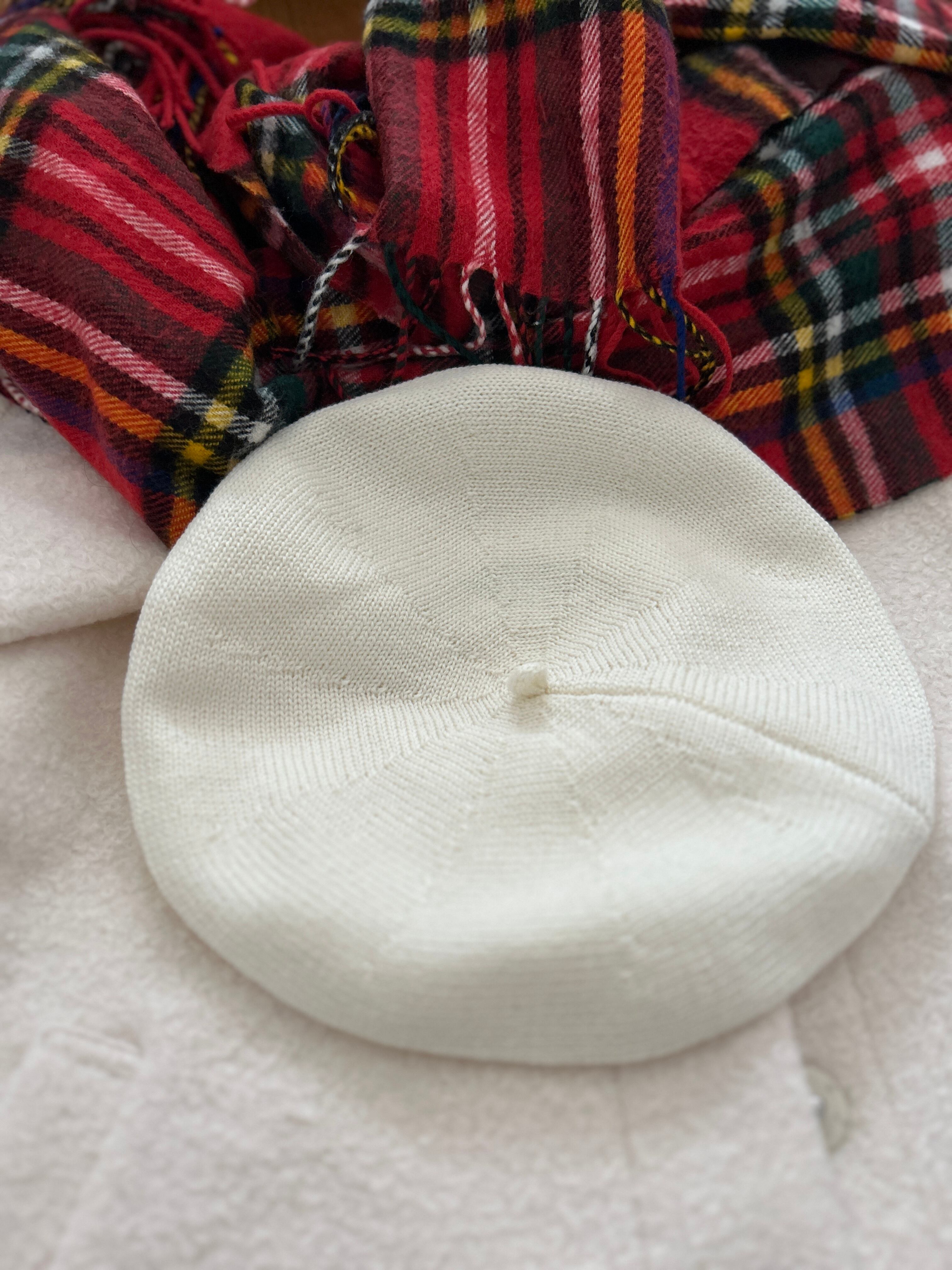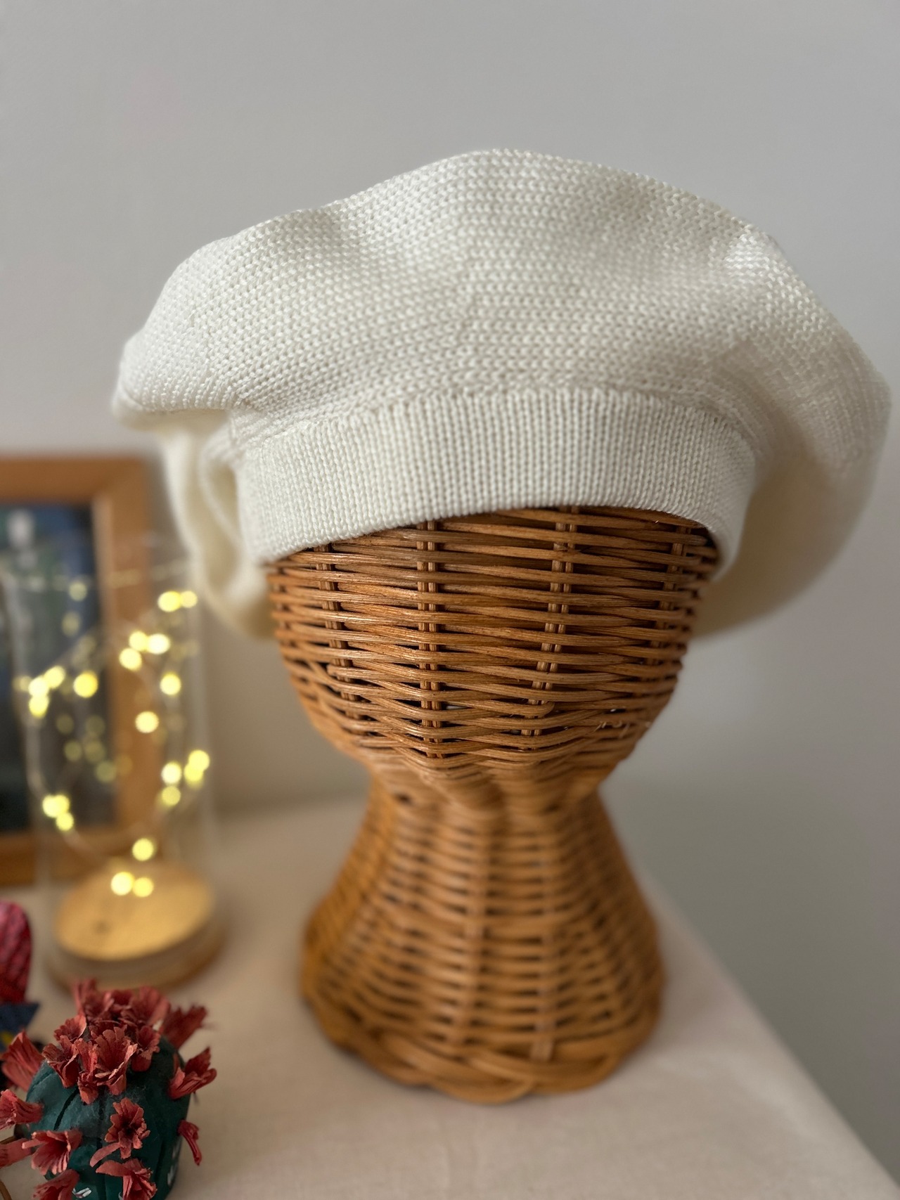 【ニットベレー帽】ホワイト・シルク裏地/リトアニア[IG-BR05]