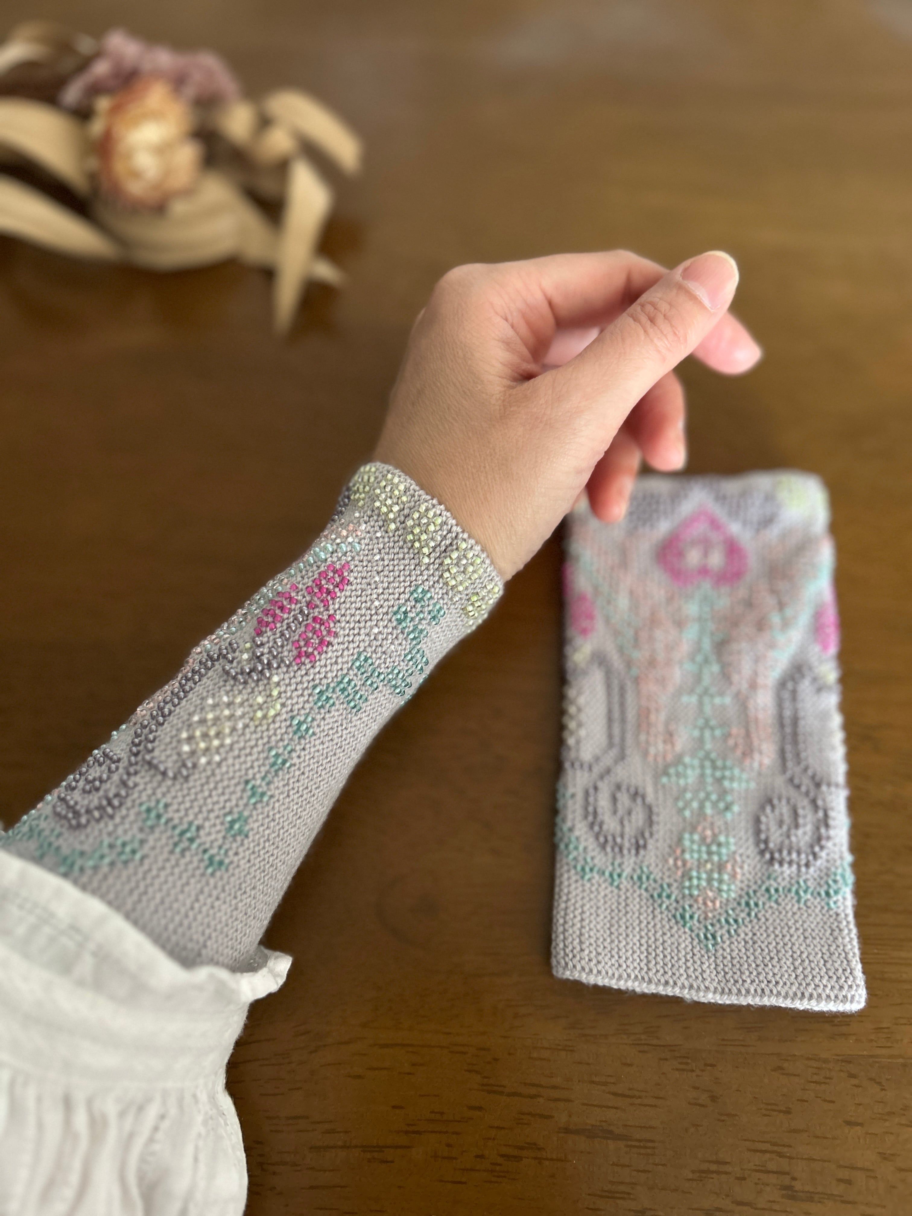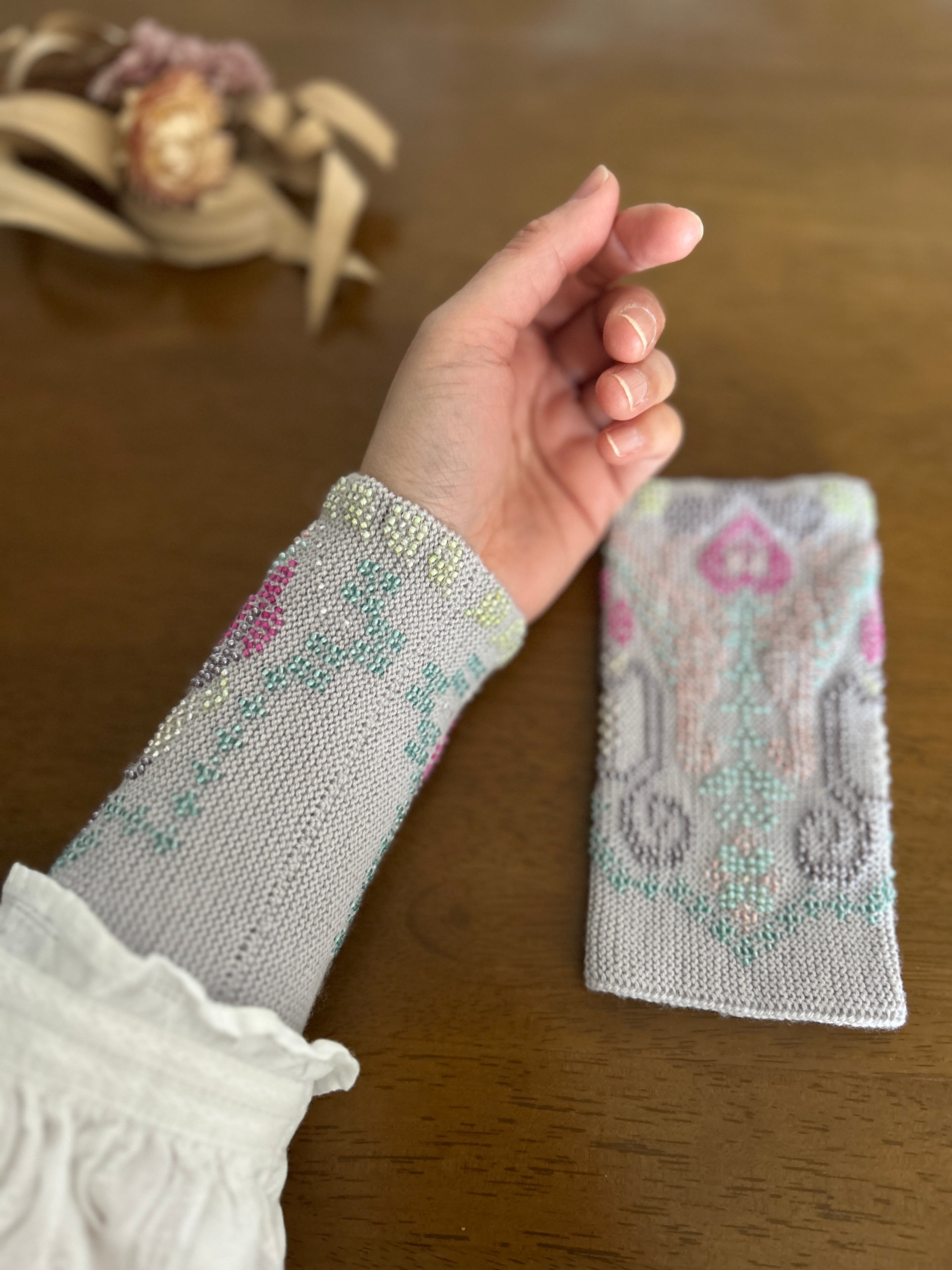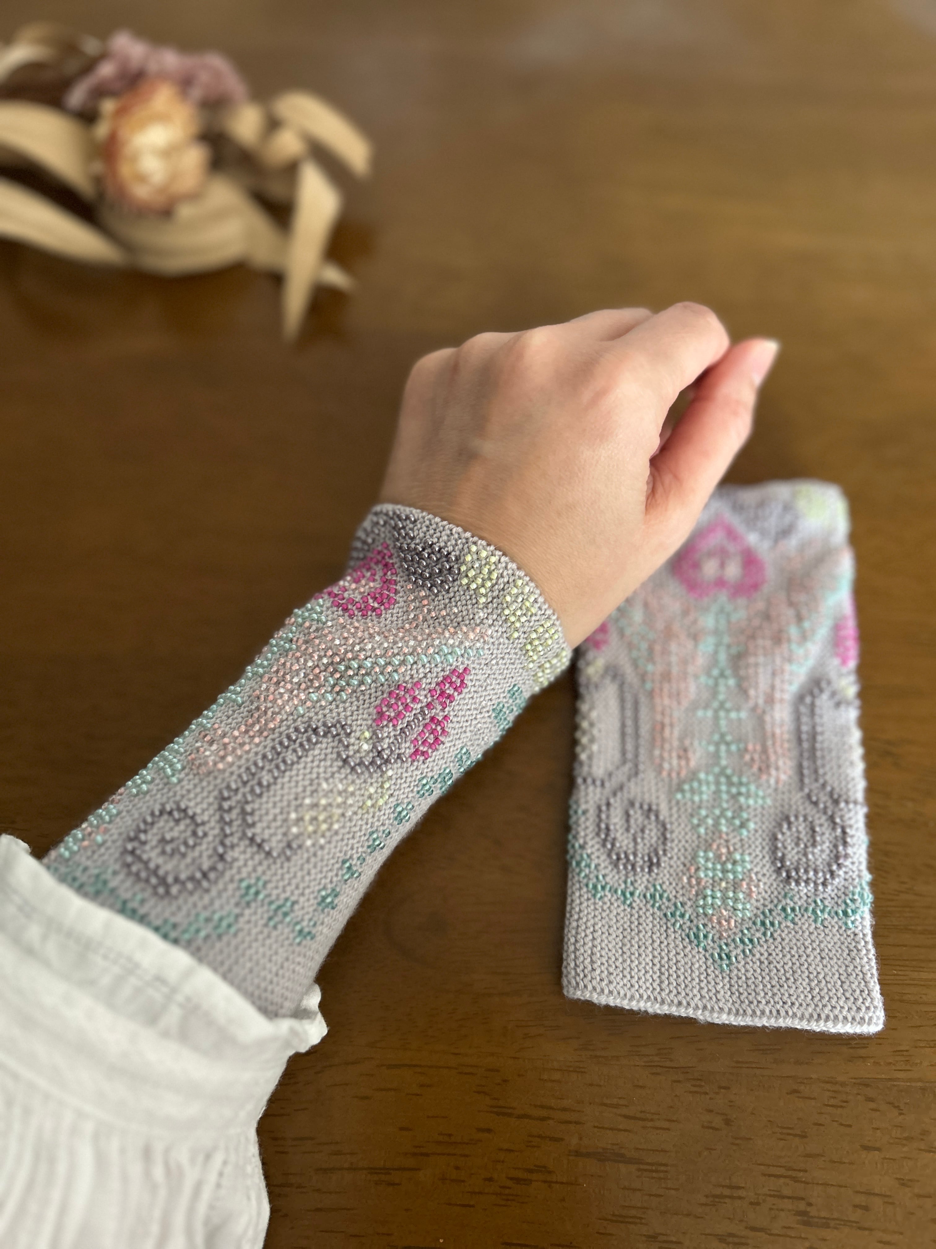 ビーズで作られたリストウォーマーは