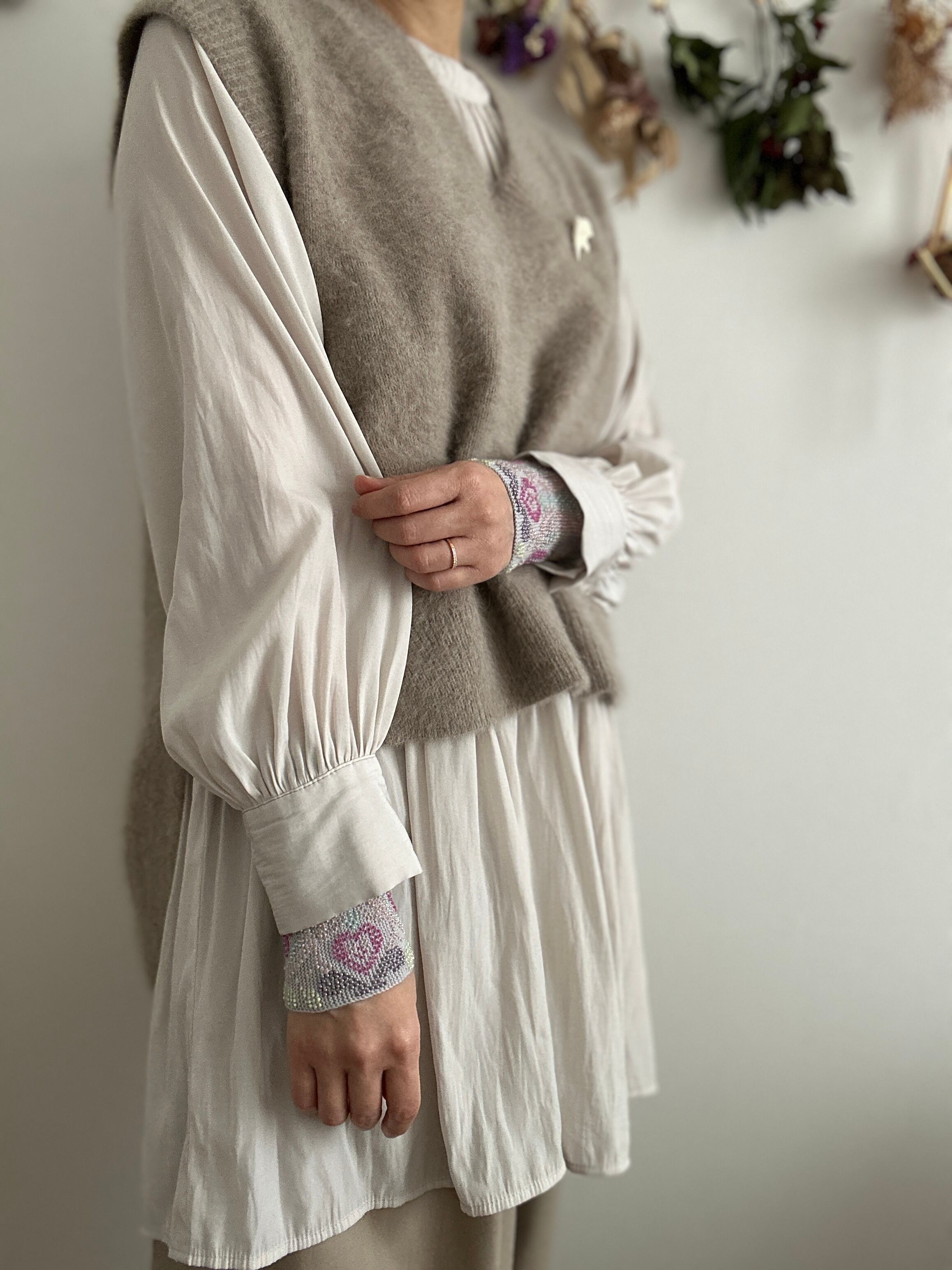 ビーズ編みのリストウォーマー(リエシネス)です。